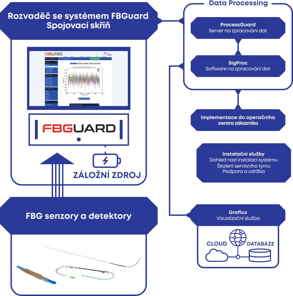 Systém pro ochranu mostních konstrukcí obvykle obsahuje senzory pro měření poměrného přetvoření (tzv. strain senzory) určené pro stanovení změny délky optického vlákna mezi dvěma body. Umožňují měřit mezery mezi nosníky a pilíři, stav a vývoj trhlin, ohyb nosníku atd., ale kromě mechanického namáhání s jejich pomocí změříte i řadu různých fyzikálních parametrů jako náklon, posun, teplota, deformace, tlak, vibrace atd. Vedle strain senzorů nabízíme i další typy FBG senzorů a detektorů pro měření dynamických změn vznikajících při zatížení mostu (např. při průjezdu vlaku). Zároveň nabízíme i monitorovací a měřicí systémy navržené pro měření těchto FBG senzorů a detektorů. Díky tomu jsou získaná data komplexnější a přesnější, než výstupy z běžné mostní prohlídky.